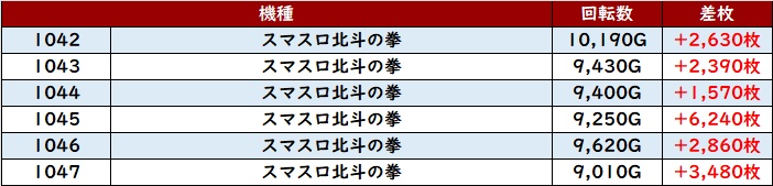 続いて「スマスロ北斗 1042~1047」が文句なしの結果に!