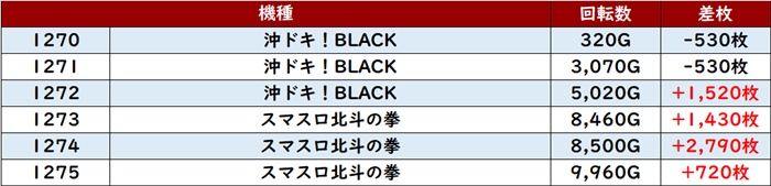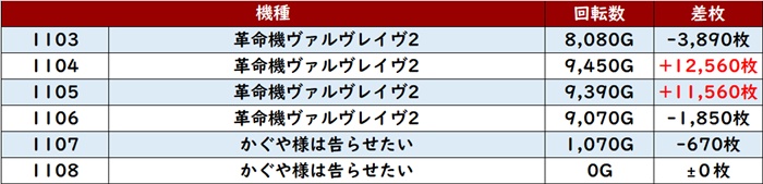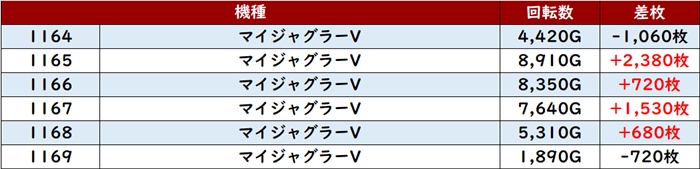 秘めたるポテンシャルの高さを存分に活かされ、差枚数+1.1万枚超えが2台も見られるなど、凄まじい破壊力を見せつけていた。