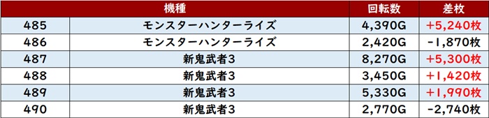 まずは「モンハンライズ~新鬼武者3 485~490」が大盛況に!