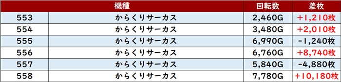 多少の荒さは見られたものの、差枚数+13,110枚と大台を軽々と超える台まで見られ、一際輝く存在となった。