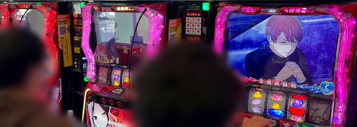朝イチは「ヴヴヴ」「ヴヴヴ2」「東京喰種」「からくりサーカス」「かぐや様」から埋まり、「ジャグラーシリーズ」を除きほぼ満台でのスタートとなった。