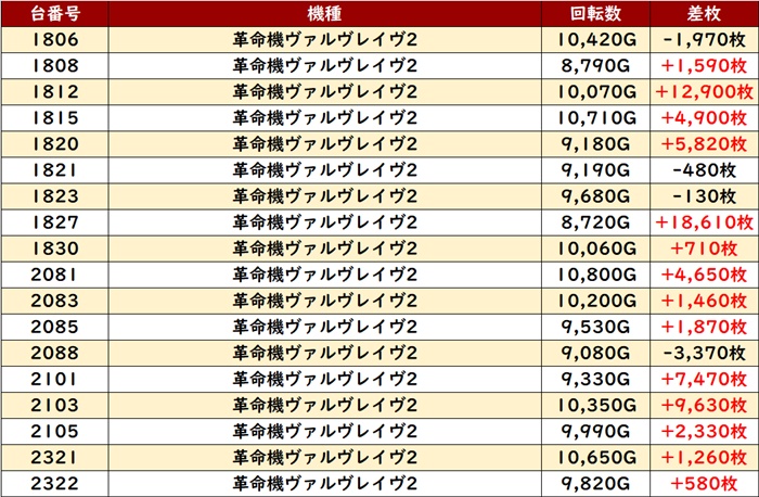 こちらも殆どが回転数1万G超えの稼働となっており、中にはコンプリート機能が発動したかと思われる台まで確認することができた!