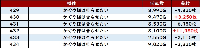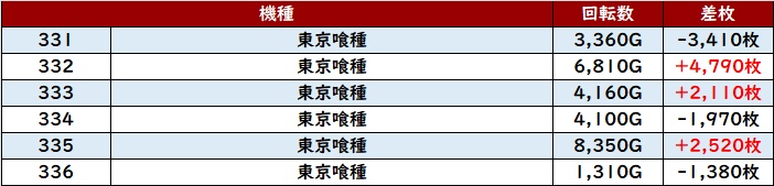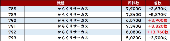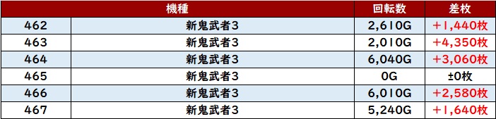 まずは「新鬼武者3 462~467」が殆どが大幅プラス差枚と大活躍!