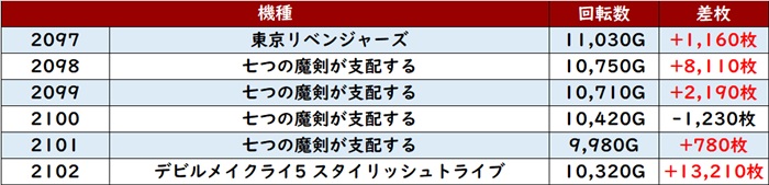 続いて「東京リベンジャーズ~DMC5ST 2097~2102」から差枚数+13,210枚と目を見張る出玉感を目撃!