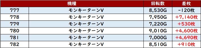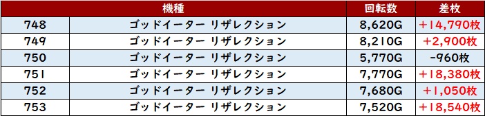 半数以上が回転数8,200G超えと腰を据えて遊技されており、状況の良さ故の結果であることが伝わってきた。