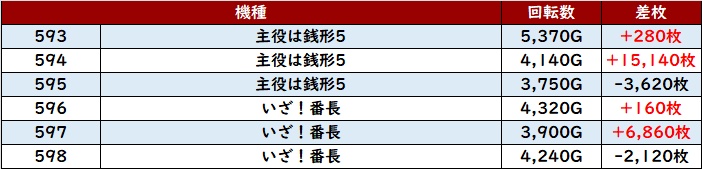 更に「銭形5~いざ番 593~598」が機種を跨いで盛況に!