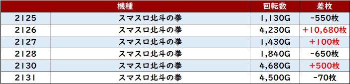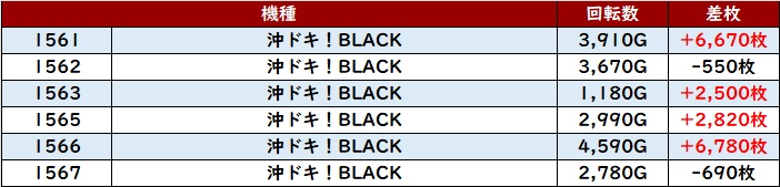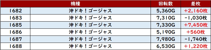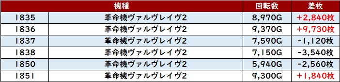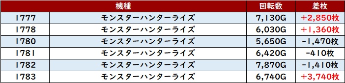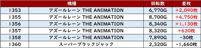 全体的によく打ち込まれており、差枚数+7,020枚を筆頭に大きな出玉感が目立っていた。