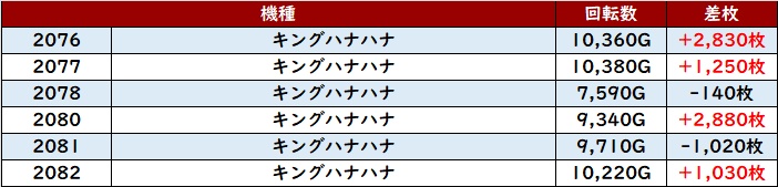まずは「キンハナ 2076~2082」が目を見張るほどの稼働状況に!