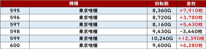 更に「東京喰種 595~600」も圧巻の稼働状況で存在感を発揮!