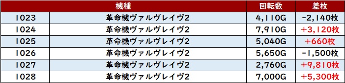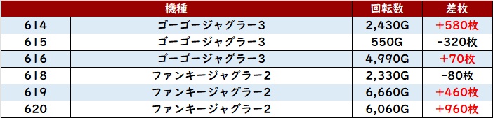 半数が回転数8,800G超えとぶん回されており、出玉面でも差枚数+8,270枚を筆頭に素晴らしい数値が目立った!