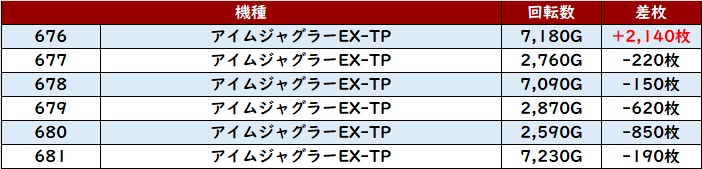 ・1台あたりの平均差枚数:+850枚