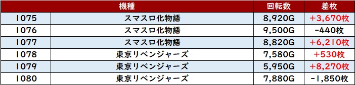まずは「スマスロ化物語~東京リベンジャーズ 1075~1080」が機種を跨いで絶好調に!