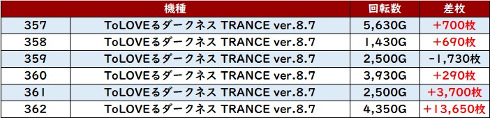 熱心に打ち込まれたことでポテンシャルが存分に発揮され、大半が差枚数+2,400枚超えの申し分ない出玉感に繋がった。