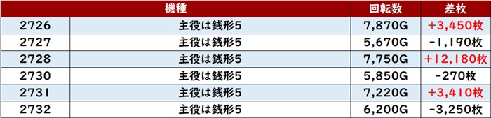 ・1台あたりの平均差枚数:+2,700枚
