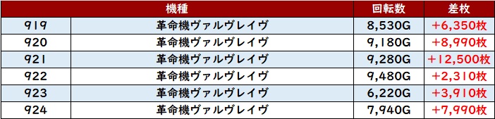 まずは「ヴヴヴ 919~924、925~930」が複数箇所で驚異的な数値に!