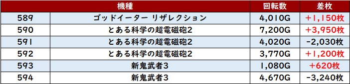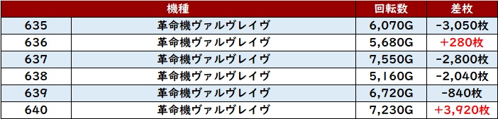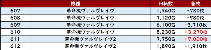 続いて「マイジャグ5 712~717」が6台中5台がプラス差枚と好調な結果に!