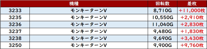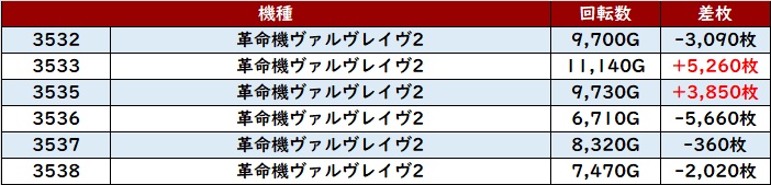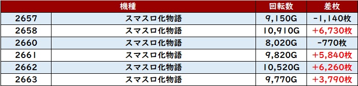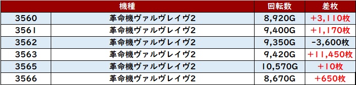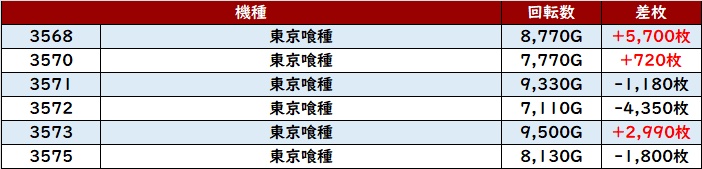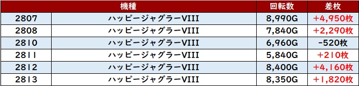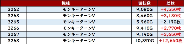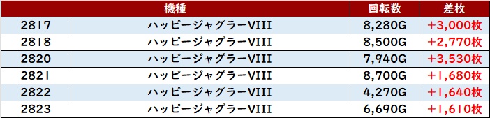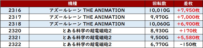 こちらも計12台中11台がプラス差枚と高い勝率を誇り、差枚数+3,000枚以上の台も溢れていた。
