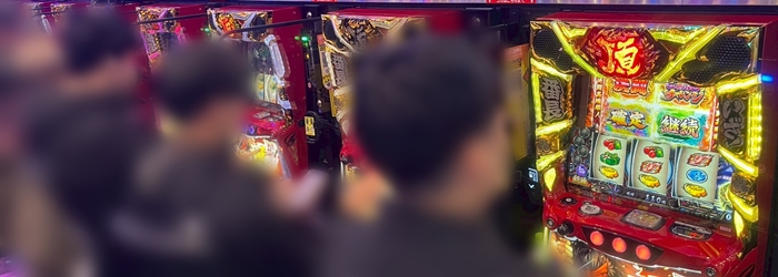 朝イチは「ヴヴヴ2」「ヴヴヴ」「スマスロ化物語」「東京喰種」「アズレン」の順に満台、その後「マギレコ」「いざ番」「マイジャグ5」などもフル稼働となった。