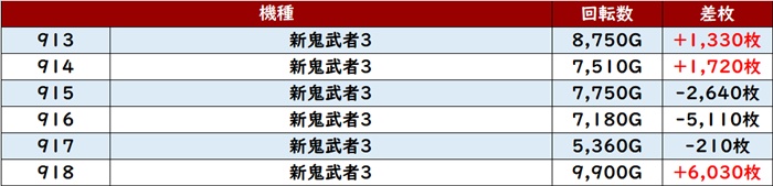 ・1台あたりの平均差枚数:+1,130枚