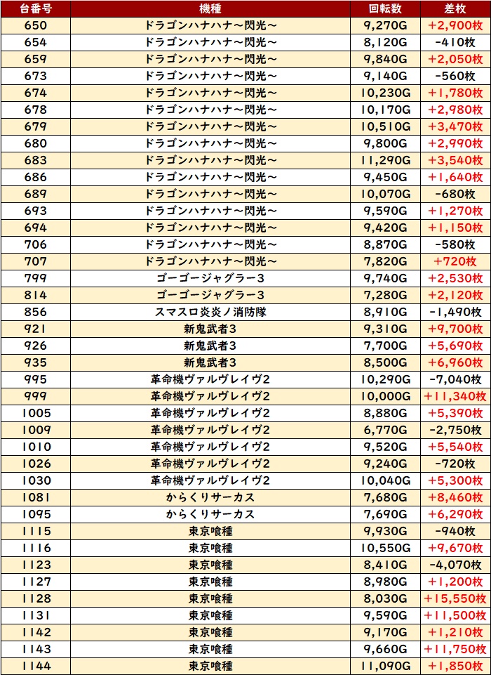 また「ヴヴヴ2」「東京喰種」から差枚数+1.1万枚超えが見受けられ、凄まじい出玉感に驚きを隠せなかった。