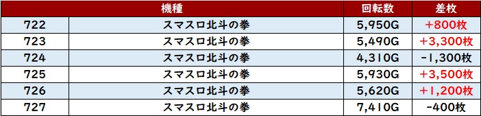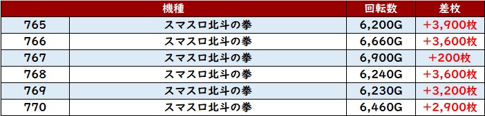 まずは「スマスロ北斗 722~727、765~770」が絶好調に!