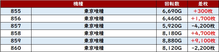 また「東京喰種 855~860」は素晴らしい出玉感で盛り上がりに貢献!