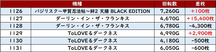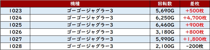 計12台中10台がプラス差枚と優秀な結果を残し、更に半数以上が差枚数+2,900枚以上と存在感を放っていた!