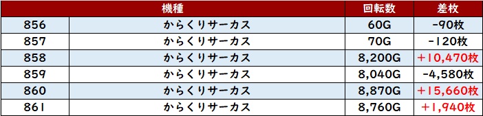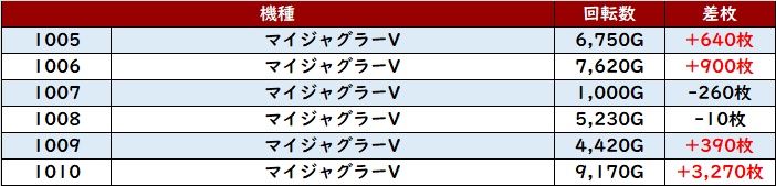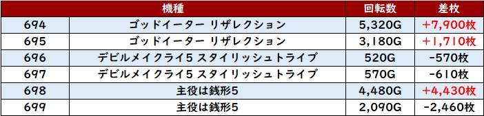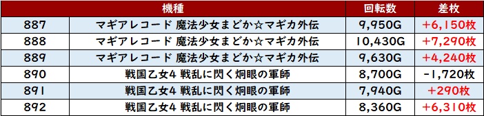 その稼働も相まって全台大幅プラス差枚に加え、半数以上が差枚数+3,200枚超えと申し分ない結果を叩き出していた!