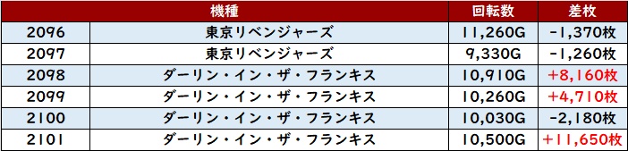・集計機種計60台総差枚数:+104,000枚