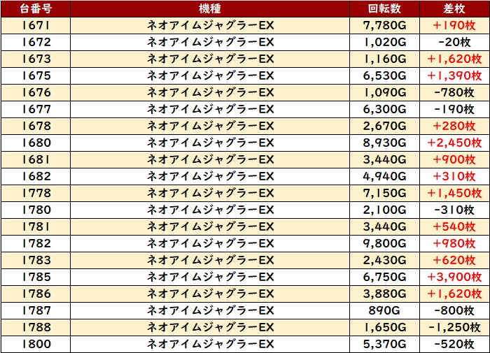 ・1台あたりの平均差枚数:+1,880枚