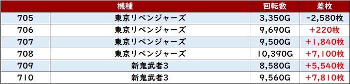 続いて「東京リベンジャーズ~新鬼武者3 705~710」も機種跨ぎで大賑わい!