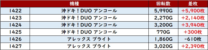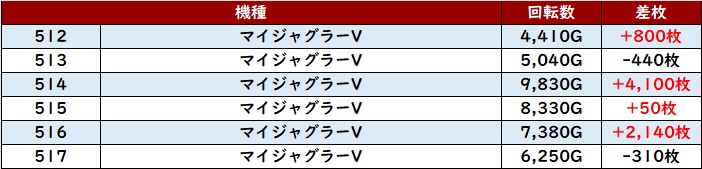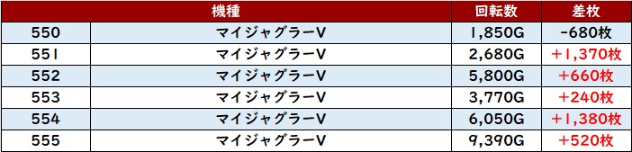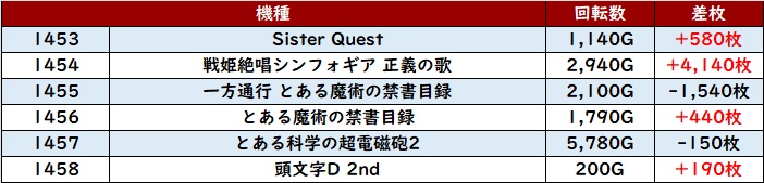 まずは「マギレコ 1344~1349」が6台中4台が大幅プラス差枚を記録!
