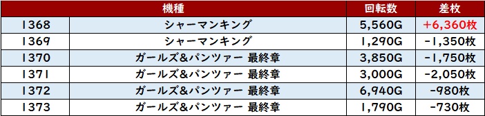 中には差枚数+5,290枚、差枚数+4,370枚といった圧巻の出玉感も見られ、店内の盛り上がりを演出した!