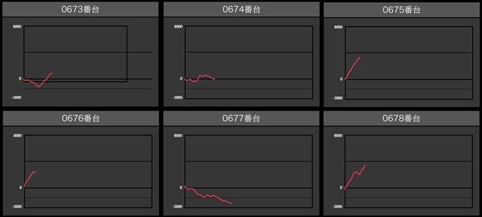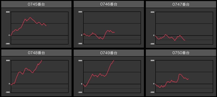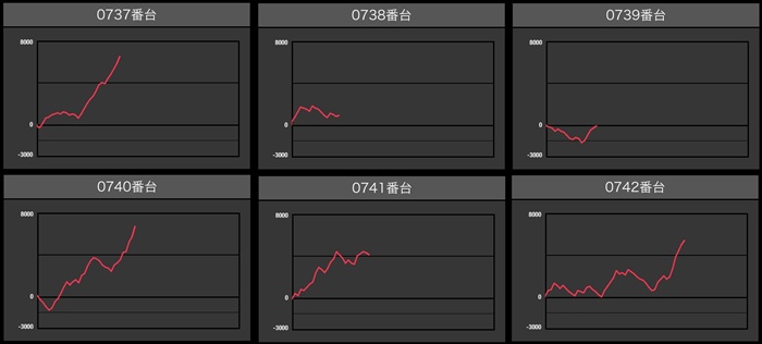 6台中4台が差枚数+4,000枚超えと絶好調で、稼働次第では更なる高みも見込めそうな状況であったことに驚きを隠せなかった。