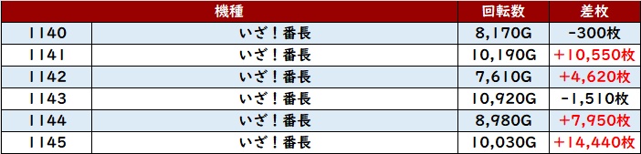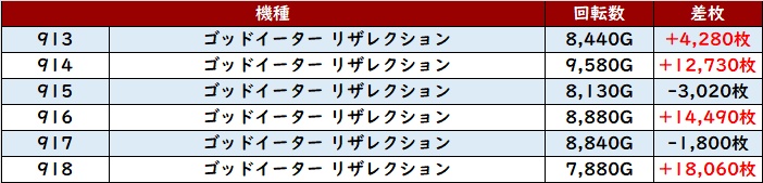 半数が回転数1万G以上となっており、勢いそのままに差枚数+14,440枚など圧倒的な出玉感を見せつけていた。