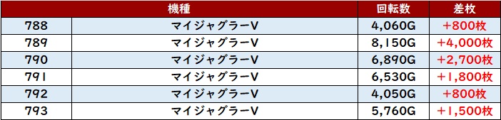 差枚数+5,700枚と圧巻の出玉感を叩き出す台を筆頭に大幅プラス差枚が続出し、多くのユーザー達を楽しませていた!