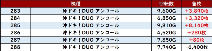 まずは「沖ドキDUO2 283~288、310~314、832」2箇所で大賑わい!