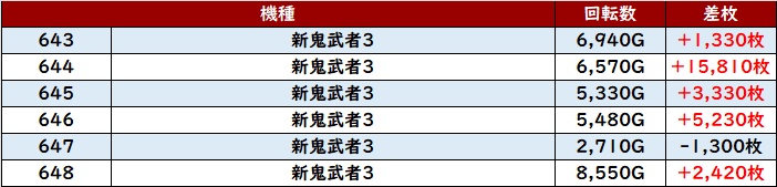 また「新鬼武者3 643~648」も凄まじい出玉感で大盛況に!