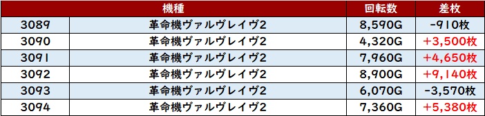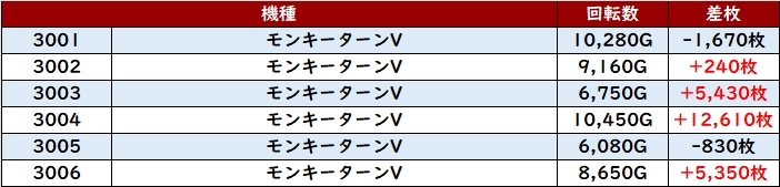 ・1台あたりの平均差枚数:+3,000枚