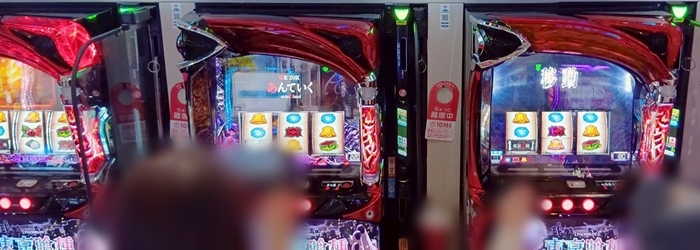 朝イチは「東京喰種」「スマスロ秘宝伝」「モンキー5」「不二子BT」「スマスロ化物語」と埋まっていった。