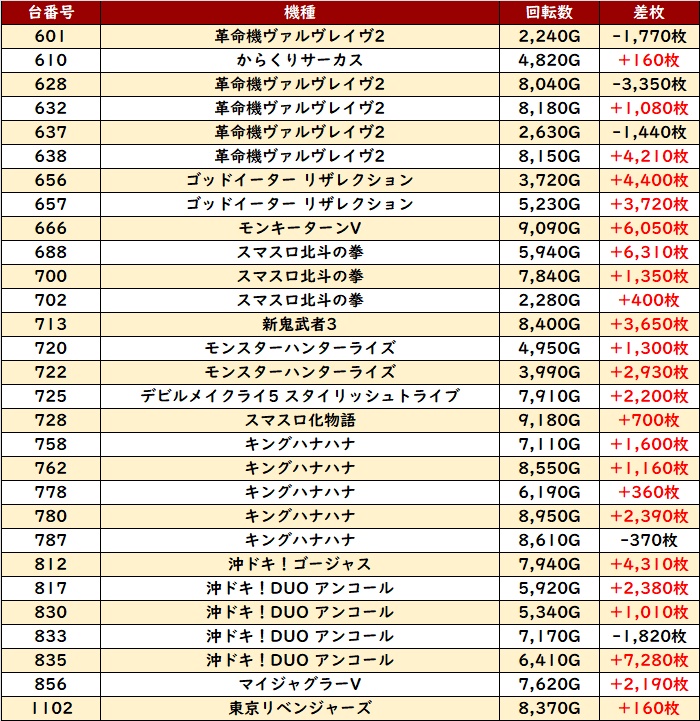 他にも「スマスロ北斗」「キンハナ」など複数台にわたって好調さを見せる機種が多く、各所にしっかりとチャンスがあった!