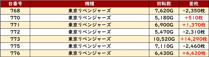 朝イチは「東京リベンジャーズ」「スマスロ化物語」「とある超電磁砲2」「ToLOVEる」「マギレコ」の順で稼働していった。