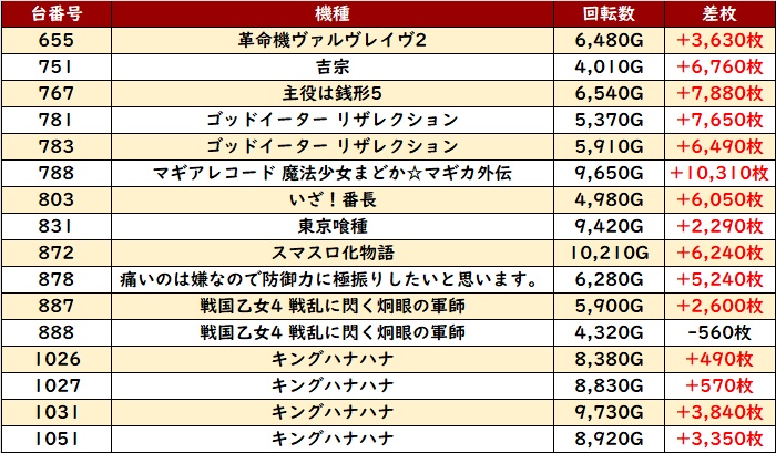 その他好調台については特に「マギレコ」「スマスロ化物語」から素晴らしい数値が見られ、圧倒的な存在感を放っていた!