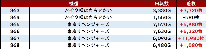 今回は「かぐや様~東京リベンジャーズ」「スマスロ北斗」など状況が良さそうな箇所を確認!