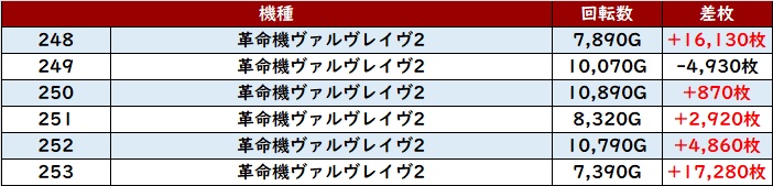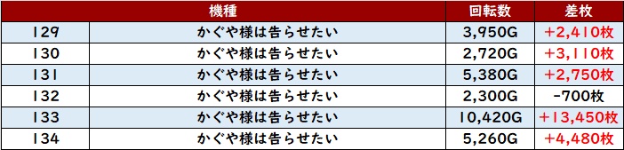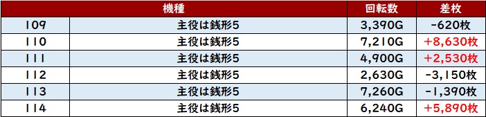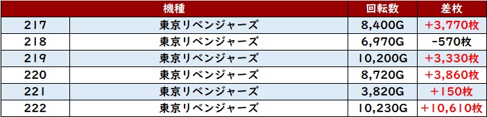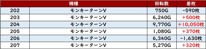 殆どが回転数1万G超えとなる中で、出玉感についても差枚数+4,400枚を筆頭に圧巻の光景を披露した。