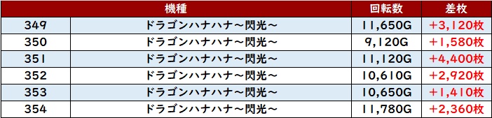 続いて「ドラハナ 349~354」が頭一つ抜けた稼働状況に!