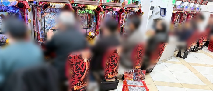 また惜しくも列③の「北斗暴凶星」が大きく出玉感は伸ばせずにいたが、列②の「シンエヴァレイ」同様に腰を据えて粘られている台も複数確認できた。