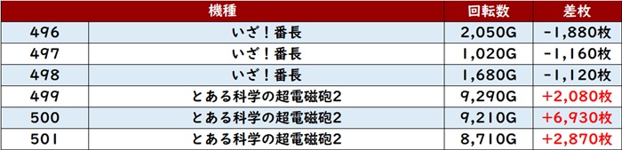 大半が回転数7,200G超えと抜群の稼働状況となっており、差枚数+16,570枚と凄まじい数値が注目を集めていた!