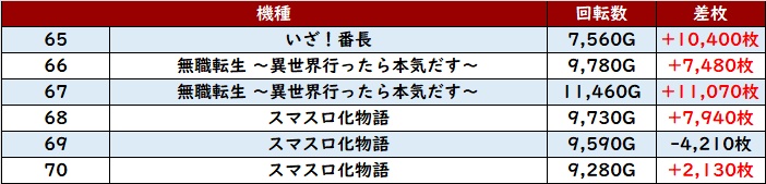 続いて「いざ番~スマスロ化物語 65~70」が機種を跨いで、圧巻の光景を披露!