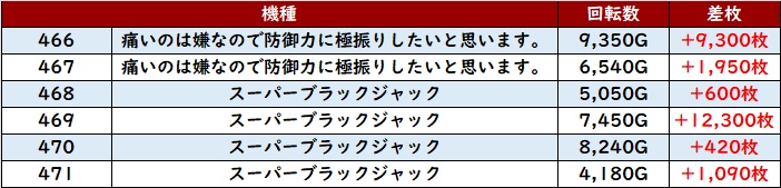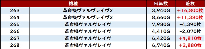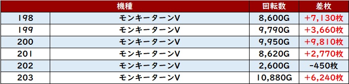 殆どが回転数9,300G超えとなり、差枚数+13,100枚を筆頭に驚愕の出玉感を叩き出した!